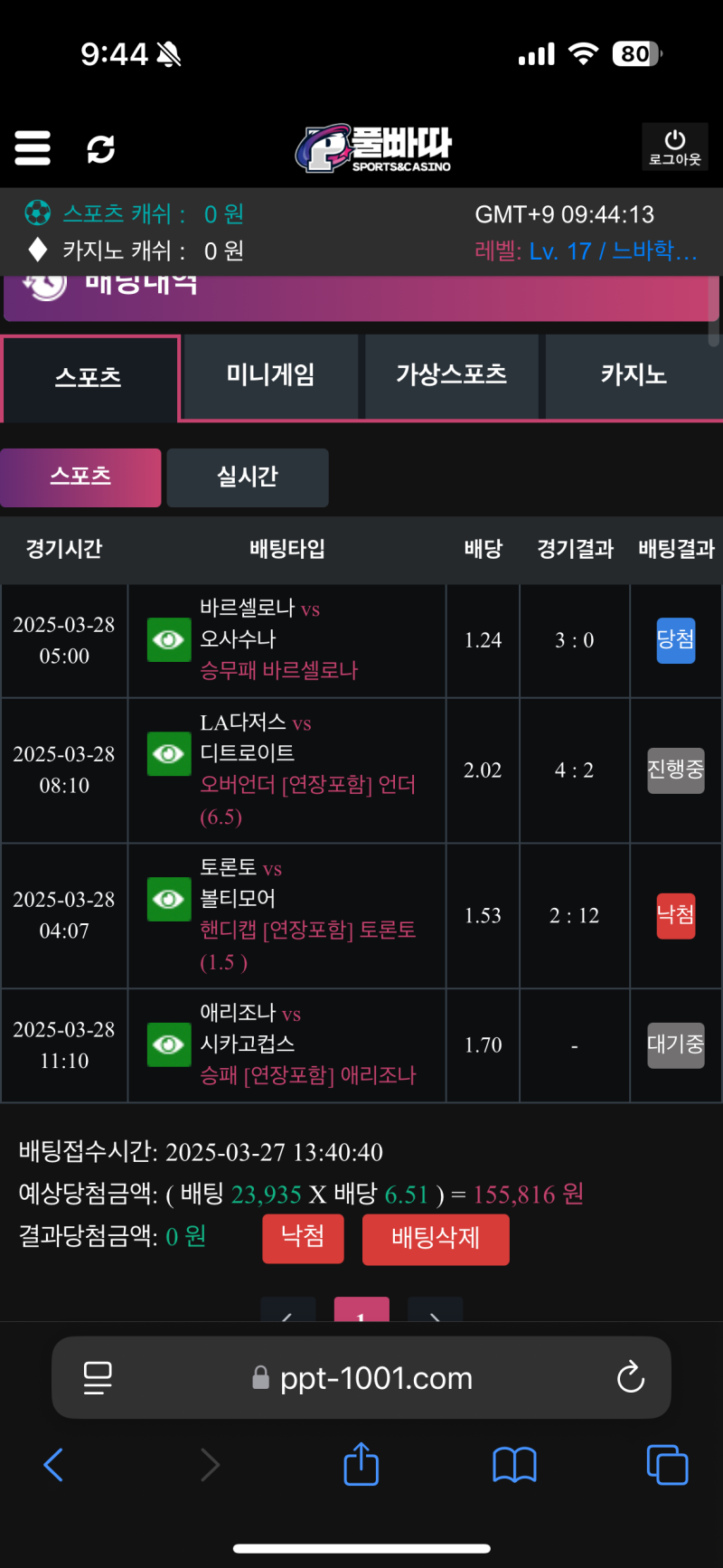 풀빠다 ) 스포츠후기 작성자 정보 느바학개론쪽지보내기 자기소개 닉네임으로 검색쪽지보내기 자기소개 닉네임으로 검색 작성 작성일 2025.03.28 09:44 컨텐츠 정보 919 조회 1 댓글 0 추천 목록 관리 글검색 본문 시범경기는 시범경기일뿐 0 추천 관련자료 이전 메인벳 ) 스포츠후기 작성일 2025.03.28 10:13 다음 벳아이 ) 스포츠후기 작성일 2025.03.28 09:43 댓글 1 기커조님의 댓글 기커조쪽지보내기 자기소개 닉네임으로 검색쪽지보내기 자기소개 닉네임으로 검색 작성일 2025.03.28 09:57 까비입니다 까비입니다 로그인한 회원만 댓글 등록이 가능합니다. 목록 관리 글검색