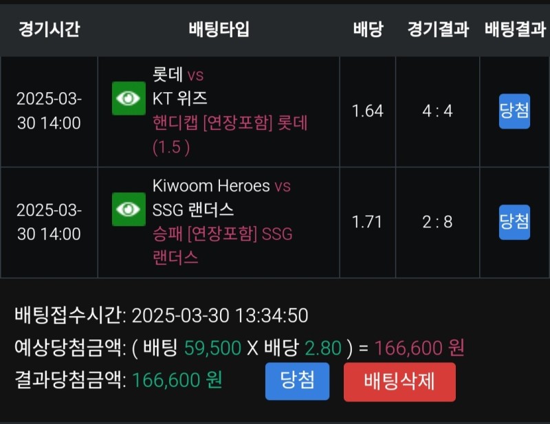 연장전에 주자가 나가도 꾸역꾸역 1실점밖에 안해서 다행히 적중