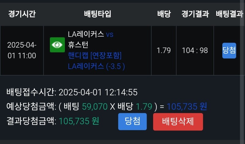 쇼미더벳 레이커스vs휴스턴 후기