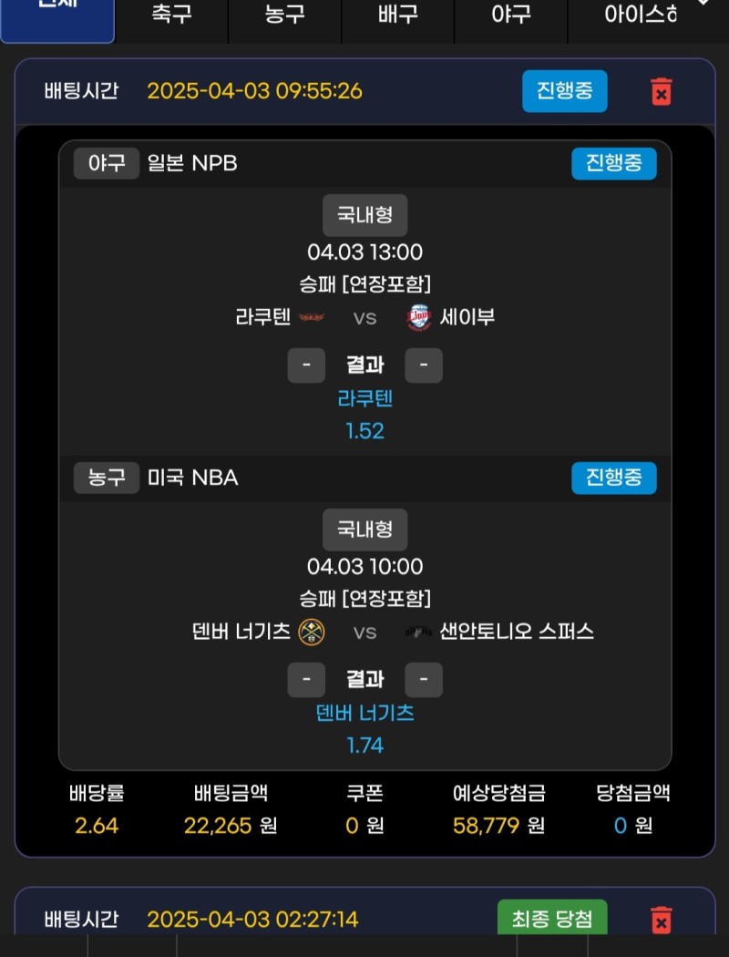 메인벳 후기 작성자 정보 오르내림1쪽지보내기 자기소개 닉네임으로 검색쪽지보내기 자기소개 닉네임으로 검색 작성 작성일 2025.04.04 17:50 컨텐츠 정보 939 조회 1 댓글 0 추천 목록 관리 글검색 본문 거북이 연장 테러 후 백투백 속죄농구 및 누구 빠지면 그 팀 이기는 국룰 로 덴버 갔는데 거북이 스찌만 내고 고문만 시킴 일야 개정배는 신경도 안썼는데 이겼네요 0 추천 관련자료 이전 메인벳 후기 작성일 2025.04.06 00:41 다음 메인벳 후기2 작성일 2025.04.03 10:57 댓글 1 기커조님의 댓글 기커조쪽지보내기 자기소개 닉네임으로 검색쪽지보내기 자기소개 닉네임으로 검색 작성일 2025.04.04 18:11 까비요 까비요 로그인한 회원만 댓글 등록이 가능합니다. 목록 관리 글검색