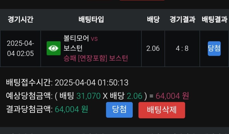 풀빠따 보스턴vs볼티모어 후기 작성자 정보 마당발쪽지보내기 자기소개 닉네임으로 검색쪽지보내기 자기소개 닉네임으로 검색 작성 작성일 2025.04.04 22:55 컨텐츠 정보 939 조회 1 댓글 0 추천 목록 관리 글검색 본문 하우크vs모튼 저번 경기 모튼 폼이 너무 구려서 보스턴 베팅 시작하자마자 계속 점수내면서 위기없이 승리 0 추천 관련자료 이전 레드불 부산KCC vs 서울삼성 후기 작성일 2025.04.04 22:58 다음 레드불 농심vs브리온 후기 작성일 2025.04.03 22:17 댓글 1 기커조님의 댓글 기커조쪽지보내기 자기소개 닉네임으로 검색쪽지보내기 자기소개 닉네임으로 검색 작성일 2025.04.04 23:10 당첨축하요 당첨축하요 로그인한 회원만 댓글 등록이 가능합니다. 목록 관리 글검색