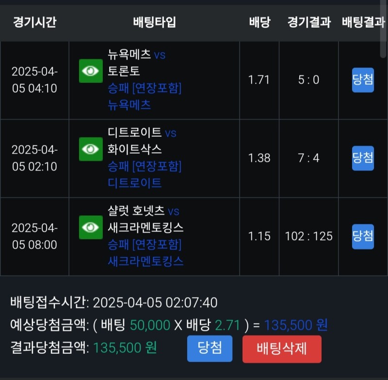 쇼미더벳 메츠vs토론토 후기 작성자 정보 마당발쪽지보내기 자기소개 닉네임으로 검색쪽지보내기 자기소개 닉네임으로 검색 작성 작성일 2025.04.05 19:33 컨텐츠 정보 953 조회 2 댓글 0 추천 목록 관리 글검색 본문 소토 믿고 메츠 베팅 근데 믿었던 소토는 활약이 미미하고 알론소의 홈런덕에 승리 0 추천 관련자료 이전 쇼미더벳 항공vs현캐 후기 작성일 2025.04.05 19:35 다음 풀빠따 화이트삭스vs디트 후기 작성일 2025.04.05 19:28 댓글 2 기커조님의 댓글 기커조쪽지보내기 자기소개 닉네임으로 검색쪽지보내기 자기소개 닉네임으로 검색 작성일 2025.04.05 19:50 축하드립니다 축하드립니다 맞추고싶어님의 댓글 맞추고싶어쪽지보내기 자기소개 닉네임으로 검색쪽지보내기 자기소개 닉네임으로 검색 작성일 2025.04.05 22:21 축하해요 축하해요 로그인한 회원만 댓글 등록이 가능합니다. 목록 관리 글검색