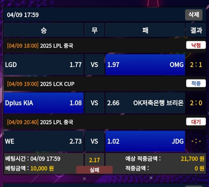 멤피스 LGD vs OMG 후기 작성자 정보 마당발쪽지보내기 자기소개 닉네임으로 검색쪽지보내기 자기소개 닉네임으로 검색 작성 작성일 2025.04.09 22:16 컨텐츠 정보 978 조회 1 댓글 0 추천 목록 관리 글검색 본문 그래도 한국인 있는 omg 베팅했는데 1세트 이기고 2, 3세트 연속으로 내주면서 패배 3세트는 역전할만 했는데 lgd 정글이 릴리아를 너무 잘해서 결국 사망 0 추천 관련자료 이전 멤피스 LG트윈스 vs 키움 후기 작성일 2025.04.09 22:19 다음 레드불 기아vs롯데 후기 작성일 2025.04.09 22:13 댓글 1 기커조님의 댓글 기커조쪽지보내기 자기소개 닉네임으로 검색쪽지보내기 자기소개 닉네임으로 검색 작성일 2025.04.09 22:56 까비요 까비요 로그인한 회원만 댓글 등록이 가능합니다. 목록 관리 글검색