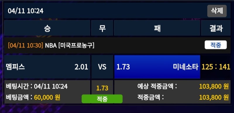 멤피스가 맞대결 전승이었는데 주전 포워드 웰스가 빠지고 감독도 경질되어서 이번에는 미네소타가 이길 것 같아 베팅