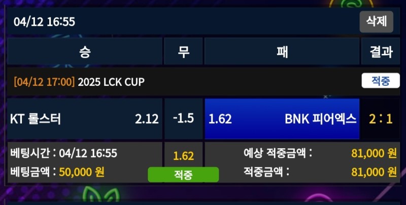 멤피스 피어엑스vs케이티 후기 작성자 정보 마당발쪽지보내기 자기소개 닉네임으로 검색쪽지보내기 자기소개 닉네임으로 검색 작성 작성일 2025.04.12 21:21 컨텐츠 정보 973 조회 1 댓글 0 추천 목록 관리 글검색 본문 피어엑스가 요즘 폼이 좋은데 역배받았길래 한세트는 따겠다 싶어서 플핸 베팅 첫판에 너무 발려서 싸했는데 다행히 두번째판은 이겨줬다 0 추천 관련자료 이전 멤피스 맨시티vs크리스탈팰리스 후기 작성일 2025.04.13 17:17 다음 멤피스 인디애나vs올랜도 후기 작성일 2025.04.12 21:20 댓글 1 기커조님의 댓글 기커조쪽지보내기 자기소개 닉네임으로 검색쪽지보내기 자기소개 닉네임으로 검색 작성일 2025.04.13 11:14 축하합니다 축하합니다 로그인한 회원만 댓글 등록이 가능합니다. 목록 관리 글검색