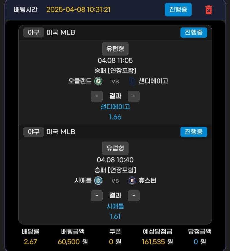메인벳 후기 작성자 정보 먼짝귀1111쪽지보내기 자기소개 닉네임으로 검색쪽지보내기 자기소개 닉네임으로 검색 작성 작성일 2025.04.12 21:44 컨텐츠 정보 979 조회 1 댓글 0 추천 목록 관리 글검색 본문 선픽 두번째 도전 시애틀의 극장으로 당ㅅ 메인벳 명예의전당 이 제일 핫한거 같네요. 0 추천 관련자료 이전 벳아이 후기 작성일 2025.04.12 21:47 다음 멤피스 후기 작성일 2025.04.12 21:41 댓글 1 기커조님의 댓글 기커조쪽지보내기 자기소개 닉네임으로 검색쪽지보내기 자기소개 닉네임으로 검색 작성일 2025.04.13 11:23 축하합니다 축하합니다 로그인한 회원만 댓글 등록이 가능합니다. 목록 관리 글검색