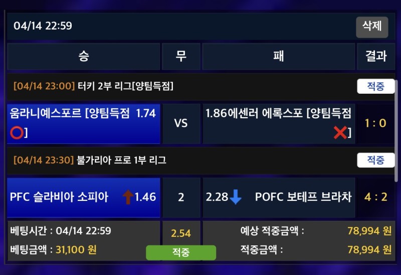 멤피스) 적중 후기 작성자 정보 낭만권위자야쪽지보내기 자기소개 닉네임으로 검색쪽지보내기 자기소개 닉네임으로 검색 작성 작성일 2025.04.15 16:57 컨텐츠 정보 969 조회 1 댓글 0 추천 목록 본문 멤피스벳 적중 후기 입니다 터키 움라니예 전반 0-0에서 후반 1-1 겨우 먹었네요 불가리아는 느슨하게 가서 오바먹었는디 아찔양득 배당이 높으면 살짝 불안한게이씀.. 0 추천 관련자료 이전 메인벳 후기 작성일 2025.04.15 17:26 다음 풀빠따 리그전 낙 후기 ㅜ 작성일 2025.04.15 16:51 댓글 1 기커조님의 댓글 기커조쪽지보내기 자기소개 닉네임으로 검색쪽지보내기 자기소개 닉네임으로 검색 작성일 2025.04.15 18:10 적중축하요 적중축하요 로그인한 회원만 댓글 등록이 가능합니다. 목록