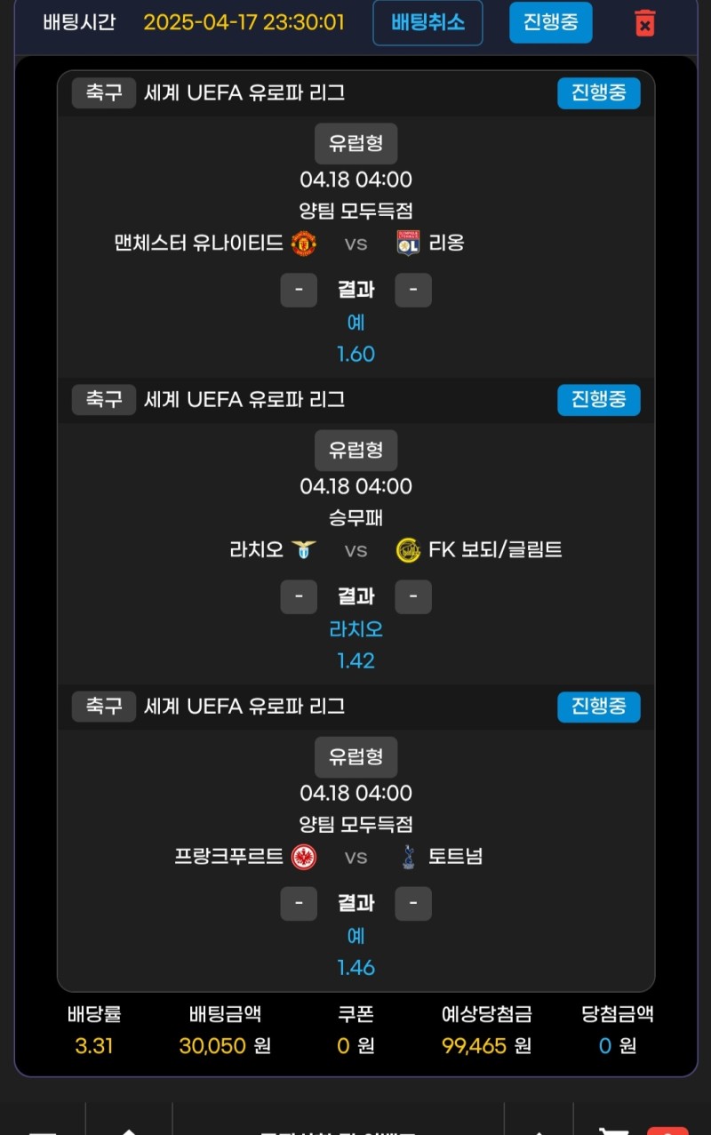메인벳 후기2 작성자 정보 오르내림1쪽지보내기 자기소개 닉네임으로 검색쪽지보내기 자기소개 닉네임으로 검색 작성 작성일 2025.04.19 20:19 컨텐츠 정보 957 조회 1 댓글 0 추천 목록 관리 글검색 본문 토트넘 난타전 왜 안한건가요 맨유는 연장전까지 크레이지 스코어런 만들고 라치오는 99퍼였죠 승승패패패로 마무리 이걸 내가 당했습니다 ㅠㅠㅠ 0 추천 관련자료 이전 메인벳 후기 작성일 2025.04.24 11:28 다음 메인벳 후기 작성일 2025.04.19 20:17 댓글 1 기커조님의 댓글 기커조쪽지보내기 자기소개 닉네임으로 검색쪽지보내기 자기소개 닉네임으로 검색 작성일 2025.04.19 23:31 아깝네요 아깝네요 로그인한 회원만 댓글 등록이 가능합니다. 목록 관리 글검색