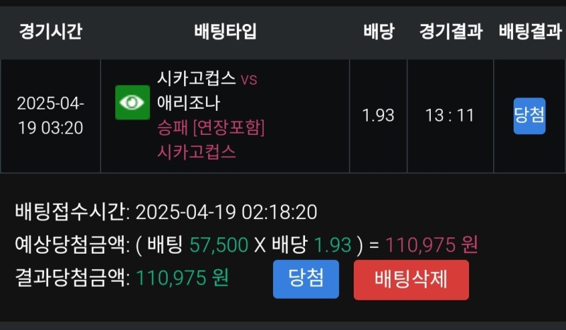 애리조나 필승조가 어제까지 2연투 해서 휴식하고 온 컵스가 유리하다고 생각해 베팅