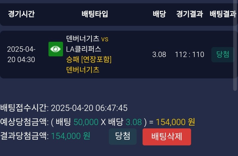 클리퍼스가 경기내내 약간 리드하다가 4쿼터 중반 덴버가 3점차로 추격했길래 실시간 베팅