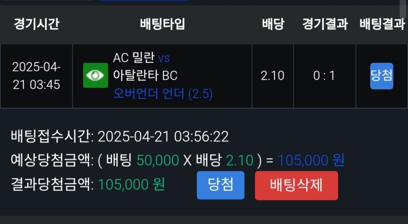 쇼미더벳 ac밀란vs아탈란타 후기 작성자 정보 마당발쪽지보내기 자기소개 닉네임으로 검색쪽지보내기 자기소개 닉네임으로 검색 작성 작성일 2025.04.21 06:20 컨텐츠 정보 922 조회 1 댓글 0 추천 목록 관리 글검색 본문 양팀 다 수비 라인업이 언더뜰 것 같아서 베팅 경기내내 공놀이 하다가 아탈란타가 몰래 한 골 넣고 승리 0 추천 관련자료 이전 풀빠따 오클라호마vs멤피스 후기 작성일 2025.04.21 06:23 다음 쇼미더벳 맨유vs울버햄튼 후기 작성일 2025.04.21 06:19 댓글 1 기커조님의 댓글 기커조쪽지보내기 자기소개 닉네임으로 검색쪽지보내기 자기소개 닉네임으로 검색 작성일 2025.04.21 07:34 축하드립니다 축하드립니다 로그인한 회원만 댓글 등록이 가능합니다. 목록 관리 글검색