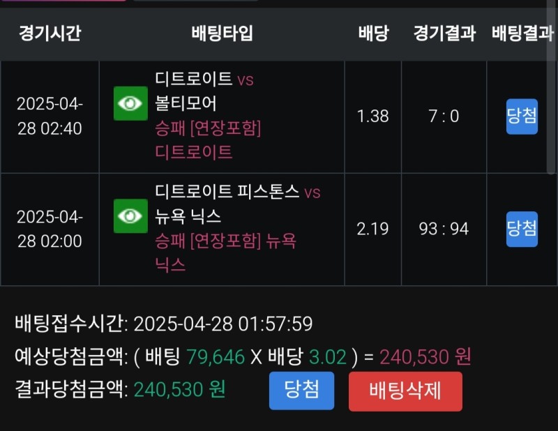 풀빠따 디트vs뉴욕 후기 작성자 정보 마당발쪽지보내기 자기소개 닉네임으로 검색쪽지보내기 자기소개 닉네임으로 검색 작성 작성일 2025.04.28 08:50 컨텐츠 정보 925 조회 1 댓글 0 추천 목록 관리 글검색 본문 전반에 뉴욕이 리드해서 무난하게 이기는 것 같았는데 후반에 디트가 역전 4쿼터에 디트가 10점차로 이기고 있었는데 뉴욕이 끈질기게 따라가거 결국 재역전승 0 추천 관련자료 이전 레드불 밀워키vs세인트루이스 후기 작성일 2025.04.28 08:52 다음 멤피스 담원vs한화 후기 작성일 2025.04.27 21:44 댓글 1 기커조님의 댓글 기커조쪽지보내기 자기소개 닉네임으로 검색쪽지보내기 자기소개 닉네임으로 검색 작성일 2025.04.28 12:09 당첨축하요 당첨축하요 로그인한 회원만 댓글 등록이 가능합니다. 목록 관리 글검색