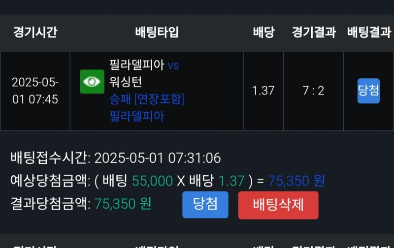 쇼미더벳 필라vs워싱턴 후기 작성자 정보 마당발쪽지보내기 자기소개 닉네임으로 검색쪽지보내기 자기소개 닉네임으로 검색 작성 작성일 2025.05.01 15:45 컨텐츠 정보 930 조회 1 댓글 0 추천 목록 관리 글검색 본문 요즘 빠따 사이클 올라오고 선발투수도 산체스라서 필라 베팅 산체스가 생각보다 꾸역투 했지만 타선지원에 힘입어 쉽게 승리 0 추천 관련자료 이전 레드불 샌디vs샌프 후기 작성일 2025.05.01 15:51 다음 쇼미더벳 애틀란타vs콜로라도 후기 작성일 2025.05.01 15:43 댓글 1 기커조님의 댓글 기커조쪽지보내기 자기소개 닉네임으로 검색쪽지보내기 자기소개 닉네임으로 검색 작성일 2025.05.01 18:40 축하드려요 축하드려요 로그인한 회원만 댓글 등록이 가능합니다. 목록 관리 글검색
