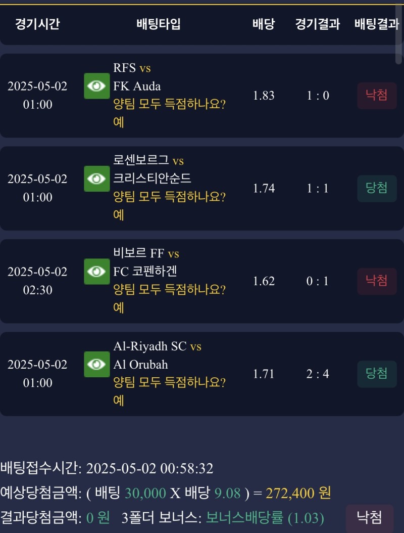 레드불) 낙첨 후기 작성자 정보 낭만권위자야쪽지보내기 자기소개 닉네임으로 검색쪽지보내기 자기소개 닉네임으로 검색 작성 작성일 2025.05.02 16:50 컨텐츠 정보 924 조회 1 댓글 0 추천 목록 관리 글검색 본문 아쉽다.. ㅜㅜ 어려웠어어제 0 추천 관련자료 이전 쇼미더벳) 낙첨후기 작성일 2025.05.02 16:51 다음 메인벳) 실시간 낙 후기 작성일 2025.05.02 16:50 댓글 1 기커조님의 댓글 기커조쪽지보내기 자기소개 닉네임으로 검색쪽지보내기 자기소개 닉네임으로 검색 작성일 2025.05.02 18:35 까비요 까비요 로그인한 회원만 댓글 등록이 가능합니다. 목록 관리 글검색