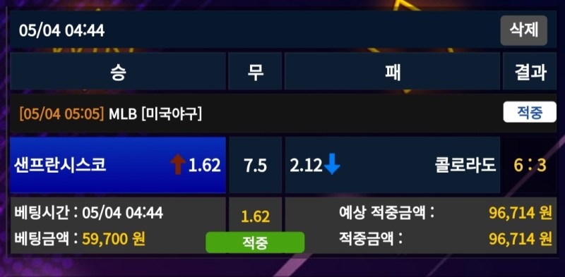 멤피스 샌프란시스코vs콜로라도 후기 작성자 정보 마당발쪽지보내기 자기소개 닉네임으로 검색쪽지보내기 자기소개 닉네임으로 검색 작성 작성일 2025.05.04 13:10 컨텐츠 정보 927 조회 1 댓글 0 추천 목록 관리 글검색 본문 선발투수 둘 다 상태가 별로 안좋아서 오버 베팅 초반에 타자들 순삭이길래 불안했는데 경기 중반 갑자기 한이닝에 양팀 합쳐 8점 나오면서 오버 0 추천 관련자료 이전 레드불 티원vs케이티 후기 작성일 2025.05.04 17:58 다음 멤피스 스트라스부르vs파리생제르맹 후기 작성일 2025.05.04 13:07 댓글 1 기커조님의 댓글 기커조쪽지보내기 자기소개 닉네임으로 검색쪽지보내기 자기소개 닉네임으로 검색 작성일 2025.05.04 13:56 적중축하요 적중축하요 로그인한 회원만 댓글 등록이 가능합니다. 목록 관리 글검색