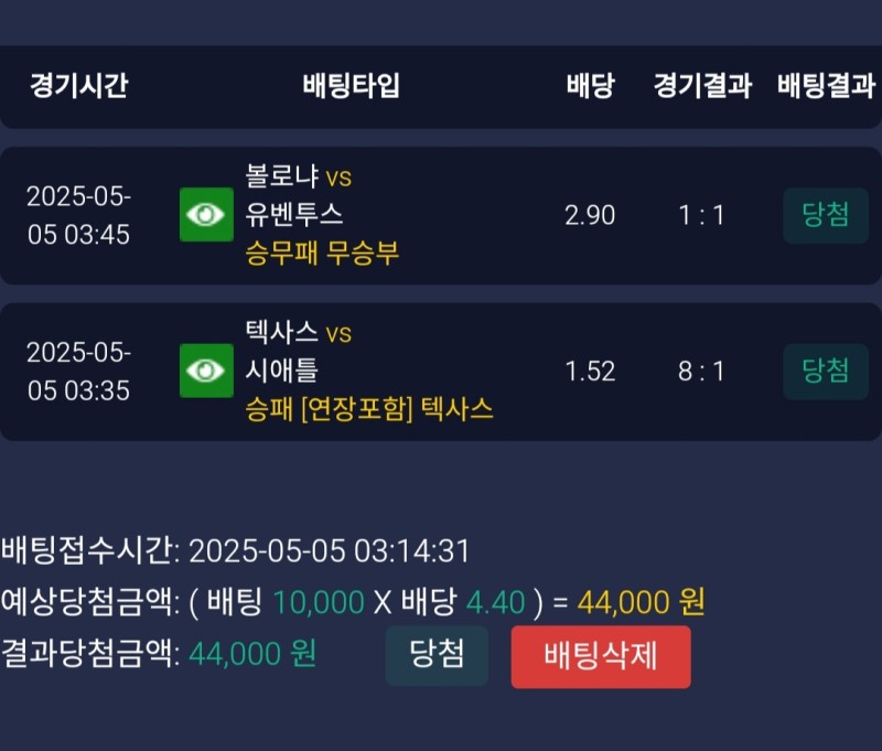 레드불 볼로냐vs유벤투스 후기 작성자 정보 마당발쪽지보내기 자기소개 닉네임으로 검색쪽지보내기 자기소개 닉네임으로 검색 작성 작성일 2025.05.05 11:20 컨텐츠 정보 943 조회 2 댓글 0 추천 목록 관리 글검색 본문 챔스 경쟁팀끼리 승점 6점짜리 경기라 무느낌 나서 베팅 유벤투스가 선제골 넣고 볼로냐가 동점골 넣은 다음 공놀이하다가 그대로 종료 0 추천 관련자료 이전 멤피스 샌프란시스코vs콜로라도 후기 작성일 2025.05.05 11:23 다음 멤피스 첼시vs리버풀 후기 작성일 2025.05.05 07:18 댓글 2 기커조님의 댓글 기커조쪽지보내기 자기소개 닉네임으로 검색쪽지보내기 자기소개 닉네임으로 검색 작성일 2025.05.05 11:50 당첨축하요 당첨축하요 후니짱님의 댓글 후니짱쪽지보내기 자기소개 닉네임으로 검색쪽지보내기 자기소개 닉네임으로 검색 작성일 2025.05.06 10:38 건승하세요! 건승하세요! 로그인한 회원만 댓글 등록이 가능합니다. 목록 관리 글검색