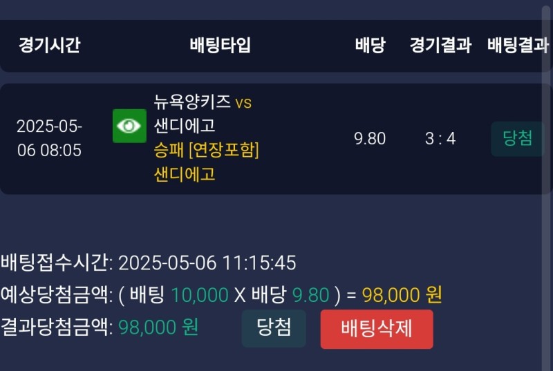 레드불 양키스vs샌디에이고 후기 작성자 정보 마당발쪽지보내기 자기소개 닉네임으로 검색쪽지보내기 자기소개 닉네임으로 검색 작성 작성일 2025.05.06 23:33 컨텐츠 정보 918 조회 1 댓글 0 추천 목록 관리 글검색 본문 8회초 샌디가 3대0으로 지고 있는 상황에 실시간 9배나 되길래 베팅 2사만루 상황에서 마차도가 2타점 2루타를 치고 그 뒤에 바로 보가츠가 적시타를 쳐내면서 역전 0 추천 관련자료 이전 레드불 화이트삭스vs캔자스시티 후기 작성일 2025.05.06 23:35 다음 멤피스 뉴욕메츠vs애리조나 후기 작성일 2025.05.06 23:30 댓글 1 기커조님의 댓글 기커조쪽지보내기 자기소개 닉네임으로 검색쪽지보내기 자기소개 닉네임으로 검색 작성일 2025.05.07 10:07 당첨축하요 당첨축하요 로그인한 회원만 댓글 등록이 가능합니다. 목록 관리 글검색