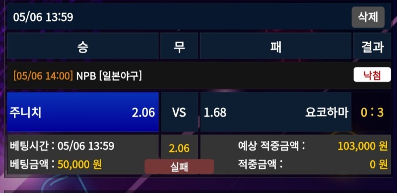 멤피스 주니치vs요코하마 후기 작성자 정보 마당발쪽지보내기 자기소개 닉네임으로 검색쪽지보내기 자기소개 닉네임으로 검색 작성 작성일 2025.05.07 22:51 컨텐츠 정보 942 조회 1 댓글 0 추천 목록 관리 글검색 본문 역배 주니치의 역귀짓을 믿고 갔는데 와쿠이는 그럭저럭 잘 던졌지만 상대 선발 잭슨을 뚫지 못하면서 패배 0 추천 관련자료 이전 멤피스 메츠vs애리조나 후기 작성일 2025.05.07 22:53 다음 레드불 화이트삭스vs캔자스시티 후기 작성일 2025.05.06 23:35 댓글 1 기커조님의 댓글 기커조쪽지보내기 자기소개 닉네임으로 검색쪽지보내기 자기소개 닉네임으로 검색 작성일 2025.05.07 22:51 까비요 까비요 로그인한 회원만 댓글 등록이 가능합니다. 목록 관리 글검색