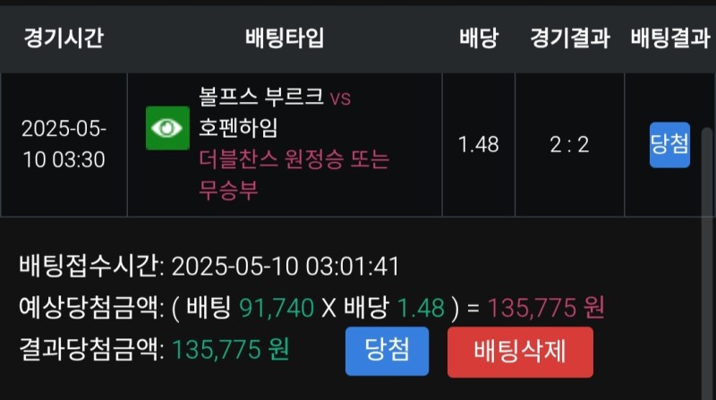 풀빠따 볼프스부르크vs호펜하임 후기 작성자 정보 마당발쪽지보내기 자기소개 닉네임으로 검색쪽지보내기 자기소개 닉네임으로 검색 작성 작성일 2025.05.10 17:17 컨텐츠 정보 954 조회 2 댓글 0 추천 목록 관리 글검색 본문 호펜하임이 강등권 탈출을 위해 승점 1점이라도 따야하는 상황이라 플핸 베팅 시작한지 1분만에 골먹혀서 싸했는데 실점할때마다 계속 동점만들면서 적중 0 추천 관련자료 이전 쇼미더벳 시애틀vs토론토 후기 작성일 2025.05.10 17:18 다음 멤피스 워싱턴vs세인트루이스 후기 작성일 2025.05.10 17:11 댓글 2 기커조님의 댓글 기커조쪽지보내기 자기소개 닉네임으로 검색쪽지보내기 자기소개 닉네임으로 검색 작성일 2025.05.10 17:30 당첨축하요 당첨축하요 은하단님의 댓글 은하단쪽지보내기 자기소개 닉네임으로 검색쪽지보내기 자기소개 닉네임으로 검색 작성일 2025.06.03 17:08 ㅊㅊ ㅊㅊ 로그인한 회원만 댓글 등록이 가능합니다. 목록 관리 글검색