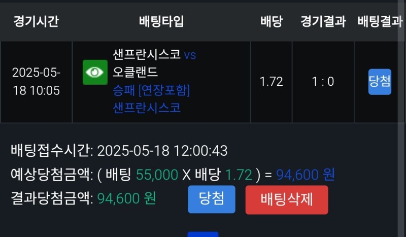 쇼미더벳 샌프란시스코vs애슬레틱스 후기 작성자 정보 마당발쪽지보내기 자기소개 닉네임으로 검색쪽지보내기 자기소개 닉네임으로 검색 작성 작성일 2025.05.18 13:52 컨텐츠 정보 888 조회 3 댓글 0 추천 목록 관리 글검색 본문 한국인이라면 제발 샌프란시스코 응원합시다 9회 0대0때 실시간 베팅해서 연장전 끝내기 승리로 적중 0 추천 관련자료 이전 레드불 워싱턴vs볼티모어 후기 작성일 2025.05.18 13:53 다음 멤피스 캔자스시티vs세인트루이스 후기 작성일 2025.05.18 13:50 댓글 3 기커조님의 댓글 기커조쪽지보내기 자기소개 닉네임으로 검색쪽지보내기 자기소개 닉네임으로 검색 작성일 2025.05.18 17:40 당첨축하요 당첨축하요 인생은도박이다님의 댓글 인생은도박이다쪽지보내기 자기소개 닉네임으로 검색쪽지보내기 자기소개 닉네임으로 검색 작성일 2025.05.18 20:31 나이따 나이따 은하단님의 댓글 은하단쪽지보내기 자기소개 닉네임으로 검색쪽지보내기 자기소개 닉네임으로 검색 작성일 2025.06.03 03:39 ㅅㅅ ㅅㅅ 로그인한 회원만 댓글 등록이 가능합니다. 목록 관리 글검색