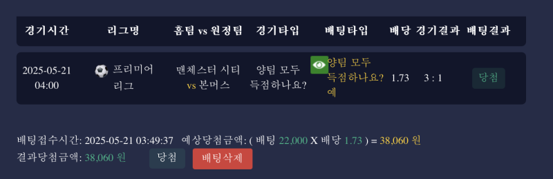 레드불) 맨시티 vs 본머스 후기 작성자 정보 흑자머신쪽지보내기 자기소개 닉네임으로 검색쪽지보내기 자기소개 닉네임으로 검색 작성 작성일 2025.05.21 14:57 컨텐츠 정보 934 조회 2 댓글 0 추천 목록 관리 글검색 본문 오늘 맨시티 경기 많이 보는 거 같길래 가봤는데 맞았네요 ㅅㅅ 0 추천 관련자료 이전 레드불 ) mlb 한폴낙 후기 작성일 2025.05.21 14:58 다음 멤피스) mlb 적중 후기 작성일 2025.05.21 14:55 댓글 2 기커조님의 댓글 기커조쪽지보내기 자기소개 닉네임으로 검색쪽지보내기 자기소개 닉네임으로 검색 작성일 2025.05.21 19:44 당첨축하요 당첨축하요 은하단님의 댓글 은하단쪽지보내기 자기소개 닉네임으로 검색쪽지보내기 자기소개 닉네임으로 검색 작성일 2025.06.03 02:12 ㅅㅅ ㅅㅅ 로그인한 회원만 댓글 등록이 가능합니다. 목록 관리 글검색