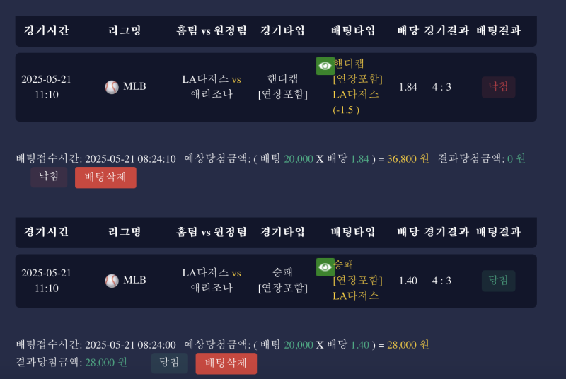 레드불) 다저스 vs 애리조나 작성자 정보 흑자머신쪽지보내기 자기소개 닉네임으로 검색쪽지보내기 자기소개 닉네임으로 검색 작성 작성일 2025.05.21 15:02 컨텐츠 정보 931 조회 2 댓글 0 추천 목록 관리 글검색 본문 꾸역승 마핸땜에 손해네여 0 추천 관련자료 이전 돌직구 mlb 한폴낙 후기 작성일 2025.05.21 15:03 다음 레드불 MLB 한폴낙 후기 작성일 2025.05.21 15:00 댓글 2 기커조님의 댓글 기커조쪽지보내기 자기소개 닉네임으로 검색쪽지보내기 자기소개 닉네임으로 검색 작성일 2025.05.21 19:54 마핸아깝네요 마핸아깝네요 은하단님의 댓글 은하단쪽지보내기 자기소개 닉네임으로 검색쪽지보내기 자기소개 닉네임으로 검색 작성일 2025.06.03 02:12 ㄲㄲ ㄲㄲ 로그인한 회원만 댓글 등록이 가능합니다. 목록 관리 글검색