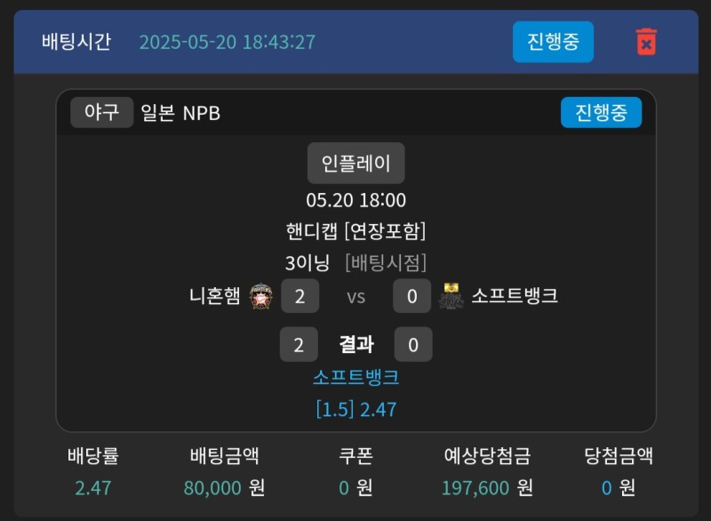 메인벳 후기 작성자 정보 먼짝귀1111쪽지보내기 자기소개 닉네임으로 검색쪽지보내기 자기소개 닉네임으로 검색 작성 작성일 2025.05.25 09:55 컨텐츠 정보 921 조회 3 댓글 0 추천 목록 관리 글검색 본문 소뱅 2-0 으로 지고 있고 니혼햄 이토 선수의 호투로 타격이 쉽진 않지만 그래도 소뱅 2점차라 1점만 좁히자는 마음으로 픽ㅅ 메인벳 리뉴얼 1천만 이벤트 기회 잘잡으세요. 0 추천 관련자료 이전 메인벳 후기 작성일 2025.05.25 09:59 다음 멤피스 후기 작성일 2025.05.25 09:51 댓글 3 기커조님의 댓글 기커조쪽지보내기 자기소개 닉네임으로 검색쪽지보내기 자기소개 닉네임으로 검색 작성일 2025.05.25 10:46 축하합니다 축하합니다 두두님의 댓글 두두쪽지보내기 자기소개 닉네임으로 검색쪽지보내기 자기소개 닉네임으로 검색 작성일 2025.05.25 20:57 쏘뱅 쏘뱅 은하단님의 댓글 은하단쪽지보내기 자기소개 닉네임으로 검색쪽지보내기 자기소개 닉네임으로 검색 작성일 2025.06.02 16:50 화이팅 화이팅 로그인한 회원만 댓글 등록이 가능합니다. 목록 관리 글검색