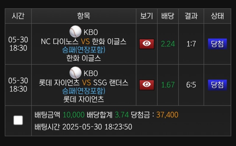 쇼미더벳 롯데vs쓱 후기 작성자 정보 마당발쪽지보내기 자기소개 닉네임으로 검색쪽지보내기 자기소개 닉네임으로 검색 작성 작성일 2025.05.30 23:14 컨텐츠 정보 937 조회 2 댓글 0 추천 목록 관리 글검색 본문 미치 화이트에게 또 당하지 않는다 탑데 승리 0 추천 관련자료 이전 쇼미더벳 키움vs두산 후기 작성일 2025.05.30 23:15 다음 쇼미더벳 소프트뱅크vs라쿠텐 후기 작성일 2025.05.30 23:13 댓글 2 기커조님의 댓글 기커조쪽지보내기 자기소개 닉네임으로 검색쪽지보내기 자기소개 닉네임으로 검색 작성일 2025.05.31 09:50 당첨축하요 당첨축하요 은하단님의 댓글 은하단쪽지보내기 자기소개 닉네임으로 검색쪽지보내기 자기소개 닉네임으로 검색 작성일 2025.06.02 15:59 축하축하 축하축하 로그인한 회원만 댓글 등록이 가능합니다. 목록 관리 글검색