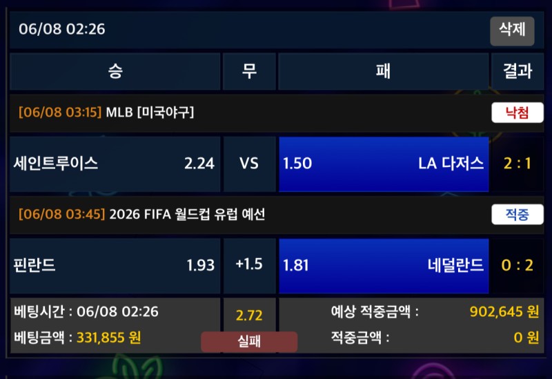멤피스 후기.. 작성자 정보 일오칠쪽지보내기 자기소개 닉네임으로 검색쪽지보내기 자기소개 닉네임으로 검색 작성 작성일 2025.06.08 11:09 컨텐츠 정보 907 조회 1 댓글 0 추천 목록 관리 글검색 본문 하.. 다저스 뭐냐 ㅜㅜㅜ 0 추천 관련자료 이전 멤피스 1폴낙 후기 ㅜㅜ 작성일 2025.06.15 23:06 다음 메인벳 올낙첨 후기.. 작성일 2025.06.08 11:08 댓글 1 기커조님의 댓글 기커조쪽지보내기 자기소개 닉네임으로 검색쪽지보내기 자기소개 닉네임으로 검색 작성일 2025.06.08 11:18 까비입니다 까비입니다 로그인한 회원만 댓글 등록이 가능합니다. 목록 관리 글검색