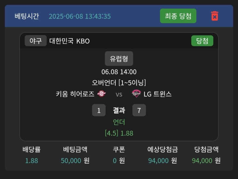 메인벳 엘지vs키움 후기 작성자 정보 마당발쪽지보내기 자기소개 닉네임으로 검색쪽지보내기 자기소개 닉네임으로 검색 작성 작성일 2025.06.08 16:39 컨텐츠 정보 906 조회 1 댓글 0 추천 목록 관리 글검색 본문 선발투수 보고 5이닝 언더 베팅 0 추천 관련자료 이전 쇼미더벳 인디애나vs오클라호마 후기 작성일 2025.06.09 11:41 다음 쇼미더벳 카르민코프vs매드 후기 작성일 2025.06.08 16:38 댓글 1 기커조님의 댓글 기커조쪽지보내기 자기소개 닉네임으로 검색쪽지보내기 자기소개 닉네임으로 검색 작성일 2025.06.08 22:42 축하합니다 축하합니다 로그인한 회원만 댓글 등록이 가능합니다. 목록 관리 글검색