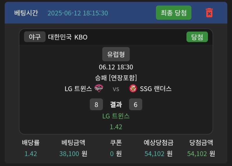 메인벳 엘지트윈스vs랜더스 후기 작성자 정보 마당발쪽지보내기 자기소개 닉네임으로 검색쪽지보내기 자기소개 닉네임으로 검색 작성 작성일 2025.06.12 23:25 컨텐츠 정보 828 조회 1 댓글 0 추천 목록 관리 글검색 본문 황족엘지 역전승 0 추천 관련자료 이전 메인벳 한화vs두산 후기 작성일 2025.06.12 23:26 다음 쇼미더벳 양키스vs캔자스시티 후기 작성일 2025.06.12 20:48 댓글 1 기커조님의 댓글 기커조쪽지보내기 자기소개 닉네임으로 검색쪽지보내기 자기소개 닉네임으로 검색 작성일 2025.06.12 23:44 당첨축하요 당첨축하요 로그인한 회원만 댓글 등록이 가능합니다. 목록 관리 글검색