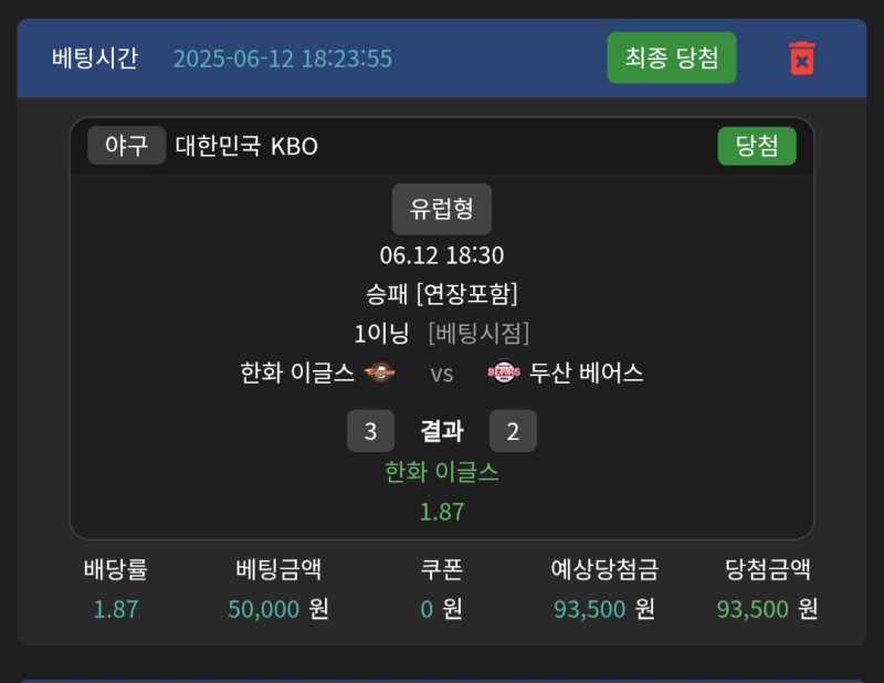 메인벳 스포츠 후기 작성자 정보 Limez쪽지보내기 자기소개 닉네임으로 검색쪽지보내기 자기소개 닉네임으로 검색 작성 작성일 2025.06.15 19:42 컨텐츠 정보 350 조회 2 댓글 0 추천 목록 본문 한화 전반기 상승세가 심상치않네요 물론 설레발이긴하지만 올해는 가을야구 (우승)? 할수있을지도 기대해봅니다 0 추천 관련자료 이전 쇼미더벳 미국vs슬로베니아 후기 작성일 2025.06.15 19:58 다음 메인벳 스포츠 후기 작성일 2025.06.15 19:40 댓글 2 기커조님의 댓글 기커조쪽지보내기 자기소개 닉네임으로 검색쪽지보내기 자기소개 닉네임으로 검색 작성일 2025.06.15 19:49 당첨축하요 당첨축하요 인생은도박이다님의 댓글 인생은도박이다쪽지보내기 자기소개 닉네임으로 검색쪽지보내기 자기소개 닉네임으로 검색 작성일 2025.06.15 20:15 나이따 나이따 로그인한 회원만 댓글 등록이 가능합니다. 목록