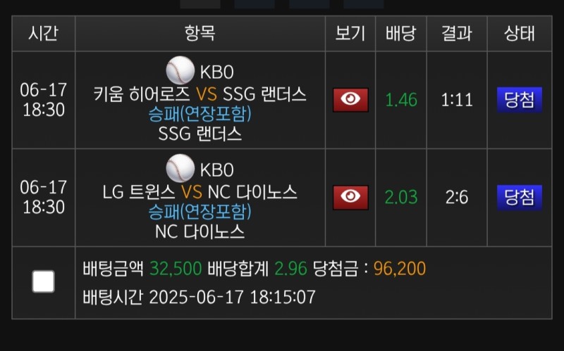 쇼미더벳 엔씨vs엘지 후기 작성자 정보 마당발쪽지보내기 자기소개 닉네임으로 검색쪽지보내기 자기소개 닉네임으로 검색 작성 작성일 2025.06.17 22:16 컨텐츠 정보 307 조회 1 댓글 0 추천 목록 관리 글검색 본문 한화랑 할때 보니까 엘지 맛감 0 추천 관련자료 이전 메인벳 삼성vs두산 후기 작성일 2025.06.17 22:17 다음 쇼미더벳 밀워키vs세인트루이스 후기 작성일 2025.06.16 10:47 댓글 1 기커조님의 댓글 기커조쪽지보내기 자기소개 닉네임으로 검색쪽지보내기 자기소개 닉네임으로 검색 작성일 2025.06.18 08:29 당첨축하요 당첨축하요 로그인한 회원만 댓글 등록이 가능합니다. 목록 관리 글검색