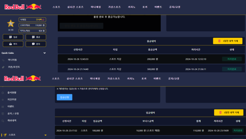 레드불후기입니다. 일단 레드불은 매일매일 150만원 상당의 이벤트를 진행중입니다. 또한 기계적 입/환 시스템을 도입하여 다른 사이트들보다 충/환이 매우 빠릅니다. 이는 곳 빠르게 배팅할수있다는 이점을 가지게 되는것이죠. 그리고 유저분들을 위해 매주 매주 이벤트가 진행중이며, 후기 이벤트, 돌발이벤트, 3/6/9 충전 이벤트 등 많은 이벤트가 존재합니다. 여러분들도 할매보증 GOAT인 레드불 많은 이용 부탁드립니다