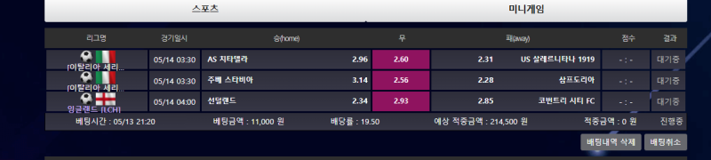 이탈리아축구 선종으로 연기떠있는데 연기시에 배팅취소할게요