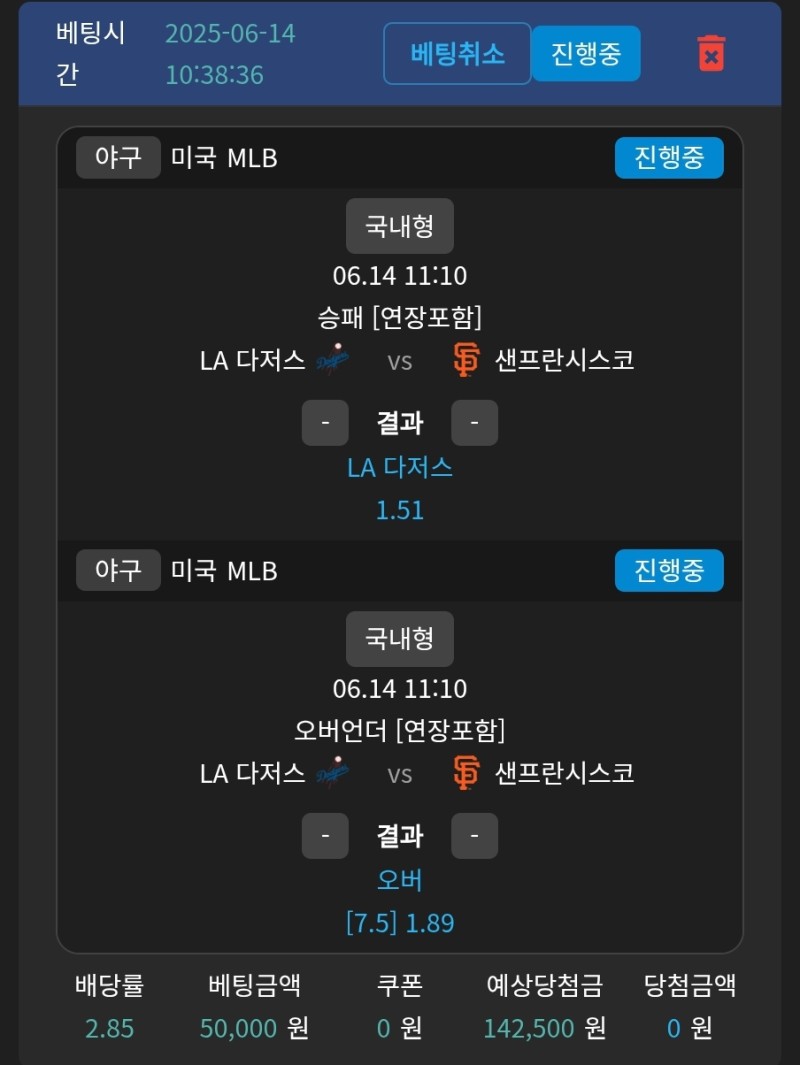 LA 다저스 승, LA 다저스 & 샌프란시스코 7.5 오버