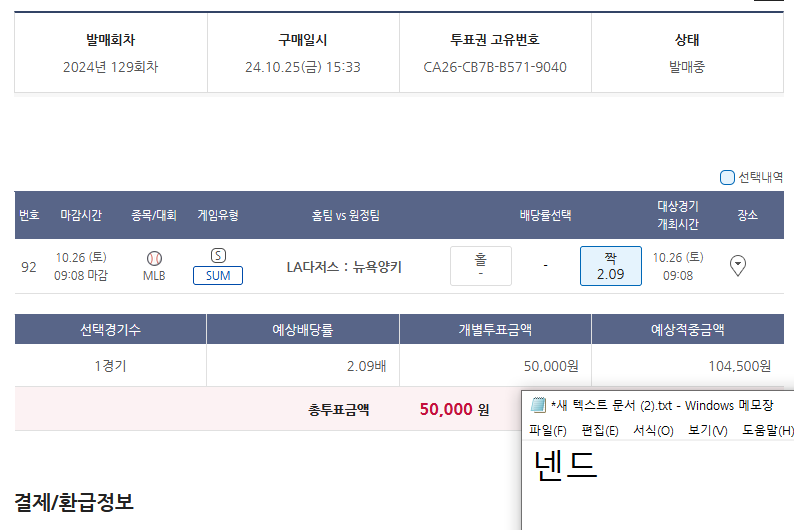 돌직구 낙첨