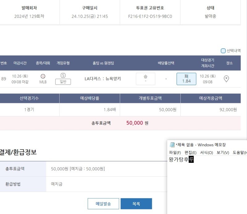돌직구 낙첨