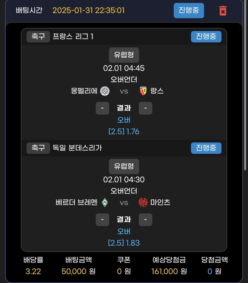 브레멘 마인츠 2.5오버