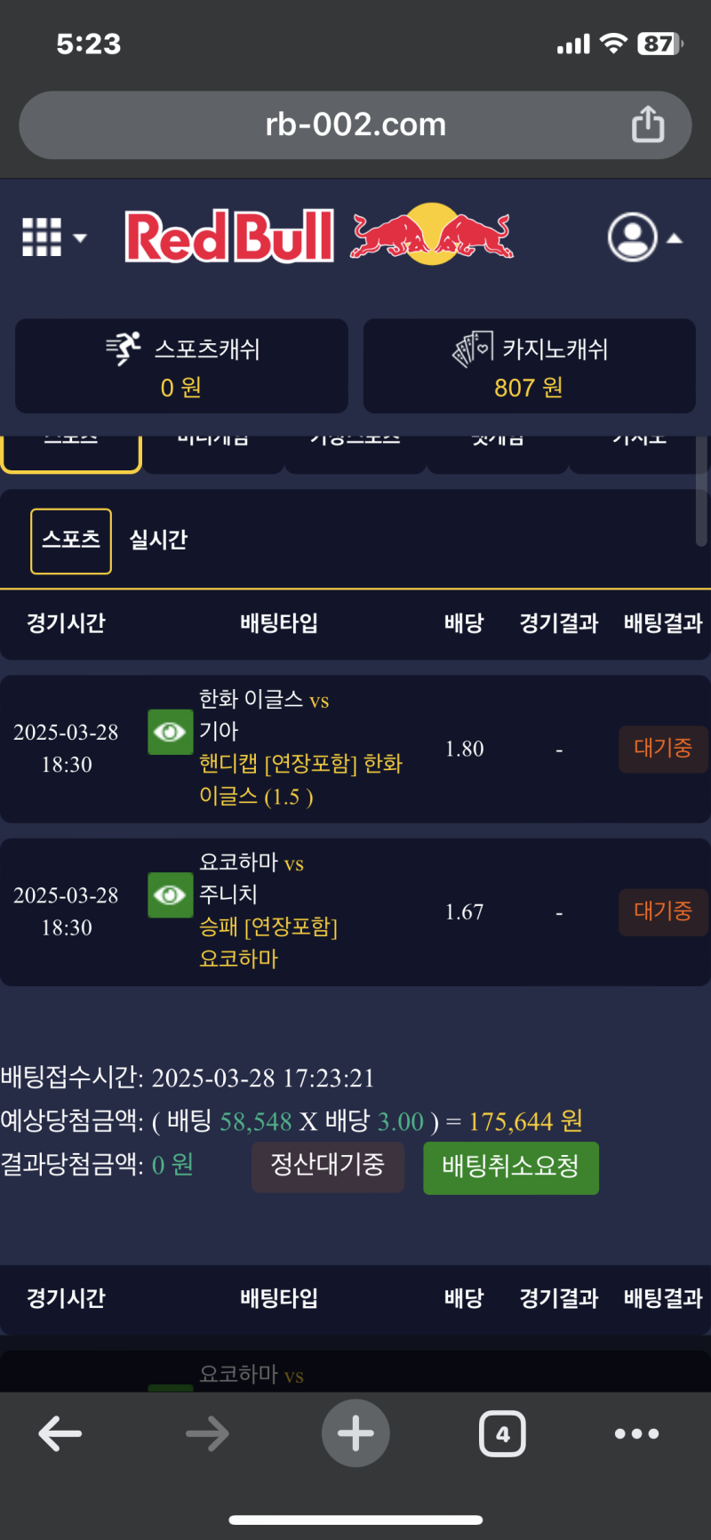 큰배팅 자제 아래것 취소후 재업 1라운드