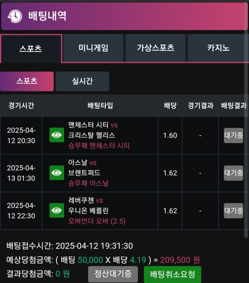 맨시티승 아스날승 레버쿠젠2.5옵